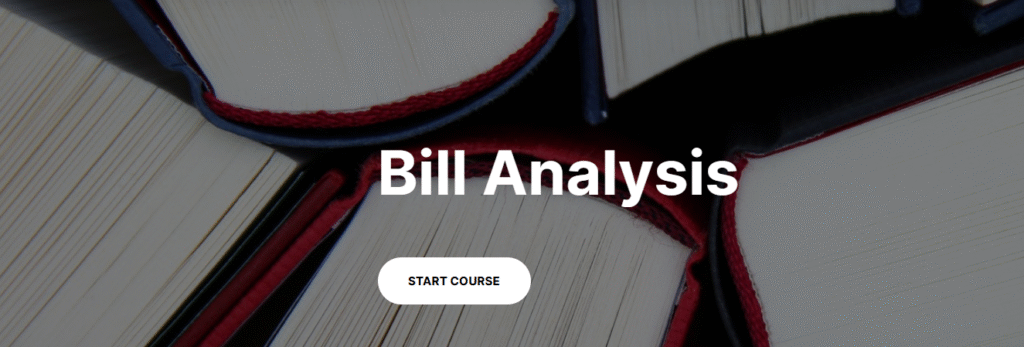 This course provides participants with the skills to effectively analyze legislative bills, breaking down their purpose, provisions, and impacts.
